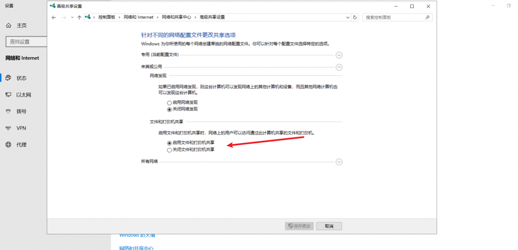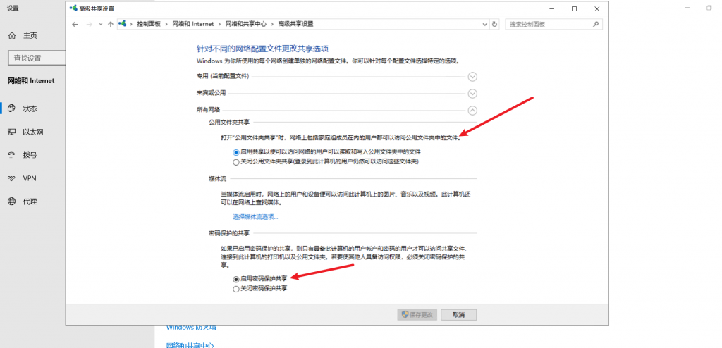 打开网络共享中心的高级共享设置勾选上以下选项