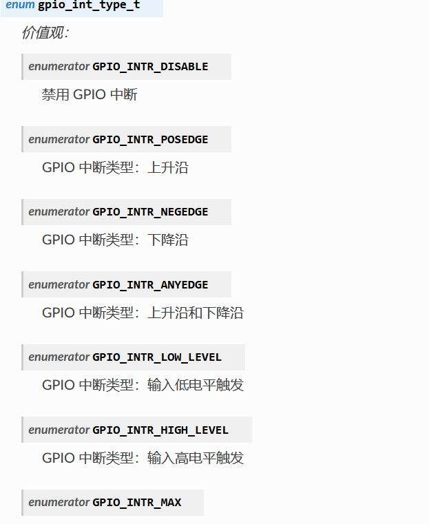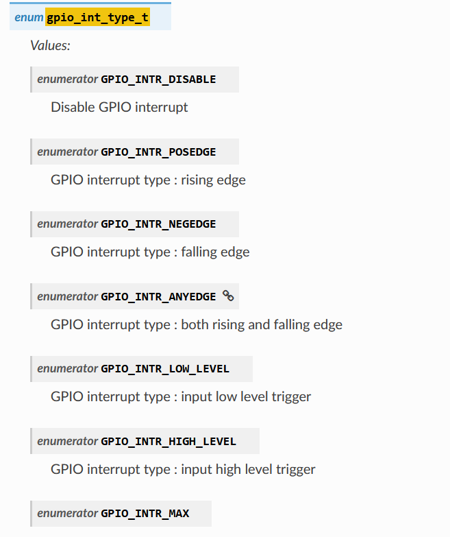 gpio_set_intr_type(GPIO_INPUT_IO_0, GPIO_INTR_ANYEDGE);